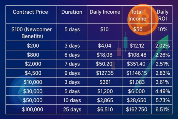 3.Start Mining: Once the contract is activated, mining begins automatically, and users can accumulate daily earnings, which can be withdrawn at any time.