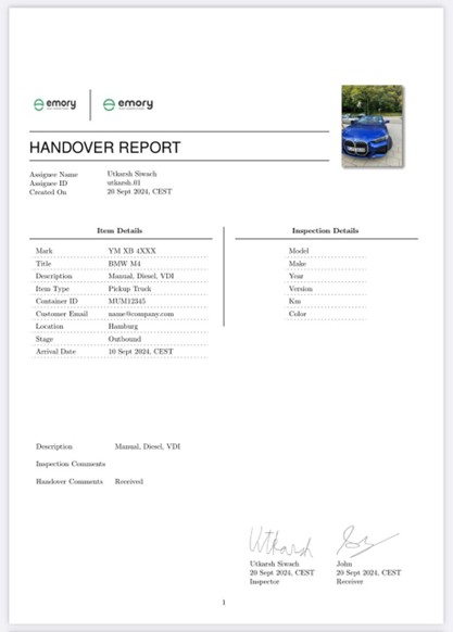 Asset identifiers like vehicle numbers, container IDs, equipment tags, or location references are very visible and used throughout consistently. The inspector’s identity and type of inspection have a constant presence in the report.