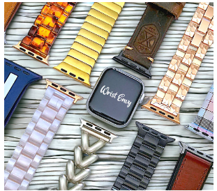 - Apple Straps: Catering to both men and women, the Apple Watch Straps at Wrist Envy feature an exclusive range of premium quality materials, including silicone, leather, resin, stainless steel, canvas and rubber to suit an assortment of lifestyles, preferences and occasions.
