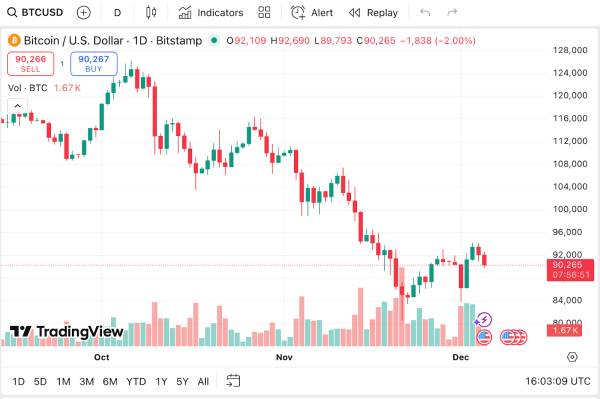 Bitcoin is trading at $90,266, down 2.3%, with a market cap of $1.8T and daily trading volume at $59.15B, down 11.59%. Despite the pullback, chart watchers noted a significant development shared in a widely viewed market update.