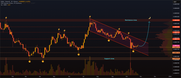 Bonk coin continues to show that culture plus structure matters. Bonk Holdings purchased about $32 million worth of BONK through FalconX, with Fireblocks custody and a Solana Squad Multisig wallet adding transparency and safeguards. Technicals are constructive. Bonk coin has formed a falling wedge that often breaks higher.