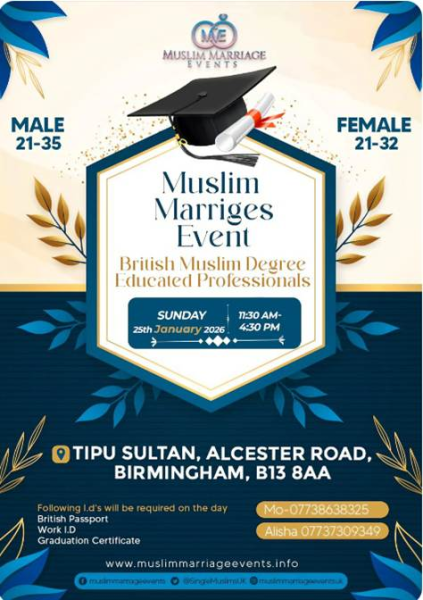 This newly announced Birmingham event is dedicated exclusively to British Muslim degree-educated professionals, offering a refined and structured setting for single Muslims who prioritise academic background, career alignment, and shared intellectual values. The gathering will take place at the prestigious Tipu Sultan Restaurant, known for its elegant ambience and accessibility.