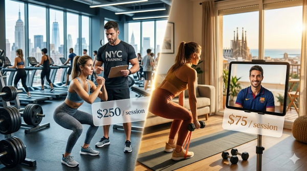Let’s look at some real numbers. If you’re based in Manhattan and want to train twice a week with a private trainer, you’re likely looking at $500 to $600 per month at minimum. Some high-end trainers in NYC charge upwards of $400 per session. For that same level of personalized programming, accountability, and coaching delivered online, clients are now spending $250 to $350 per month working with an experienced online personal trainer abroad.